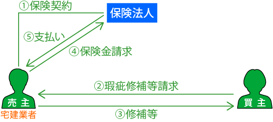 保険によって修補する場合、宅建業者が瑕疵を修補した上で、保険会社に保険金を請求するというのが原則です。