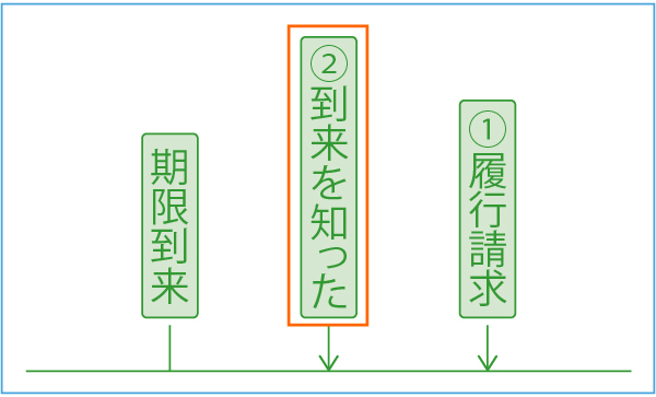 | 2 | 不確定期限があるとき | ①②の早いほう ①期限到来後に履行の請求を受けた時 ②期限到来を知った時 |