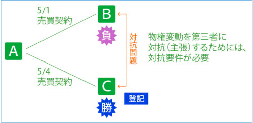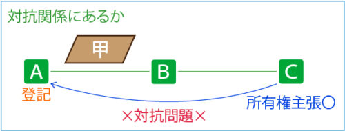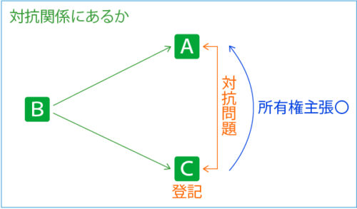 この土地の所有者は、Bなのか、それともCか。この両立しない関係が対抗関係です。