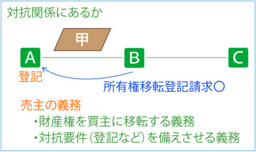 売主A・買主Bという売買契約で、売主であるAは、Bに対して、対抗要件(登記など)を備えさせる義務を負っています(民法560条)。