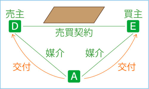 宅建業者Aが媒介により宅地の売買契約を成立させた場合、契約の各当事者(売主Dと買主Eの双方)に37条書面を交付する義務を負います(宅建業法37条1項)。