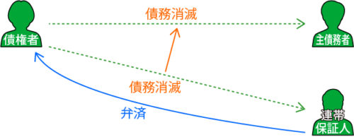 | 【例外】弁済(代物弁済・供託・相殺) | 絶対効(主債務者に効力を及ぼす) |