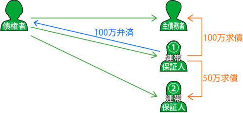 連帯保証人の一方が債務全額を弁済した場合
