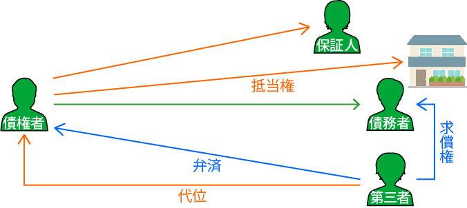 | 第三者が債務者に代わって弁済した場合 | 第三者が債権者に代位する |