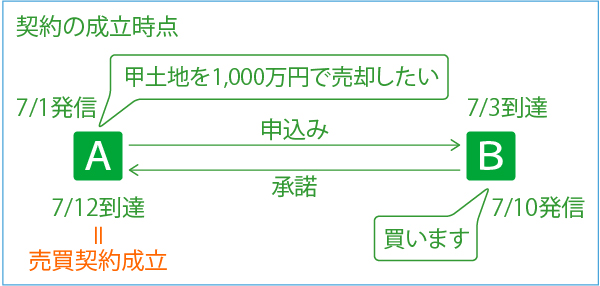 - 隔地者間の契約は、承諾の通知を発した時に成立する。