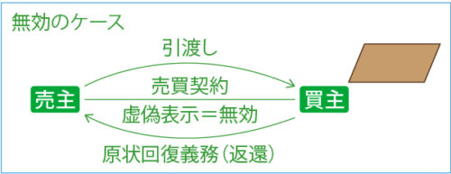 虚偽表示による売買契約に基づいて、売主が買主に土地を引渡したとすると、買主は、この土地を売主に返還する義務を負います。これが原状回復義務です。