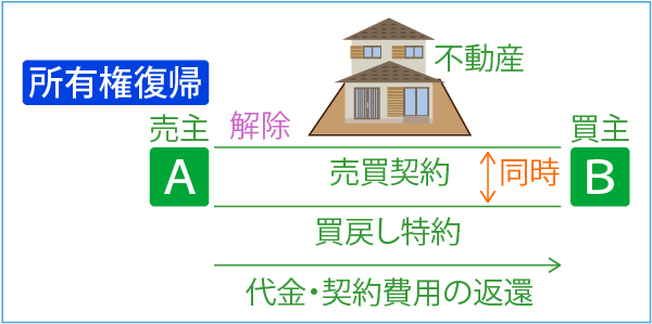 不動産の売買契約をする際、その契約と同時に買戻しの特約をすることができます。この特約は、売主Aが買主Bの支払った代金と契約費用をBに返還すれば、売買契約が解除され、その不動産の所有権がAに復帰するというものです(民法579条)。所有権がAに復帰するので、買戻しと呼ぶわけです。