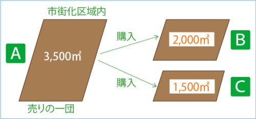 市街化区域内においてAが所有する面積3,500㎡の土地について、Bが2,000㎡、Cが1,500㎡とそれぞれ分割して購入した