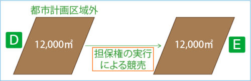 都市計画区域外においてDが所有する面積12,000㎡の土地について、Eが担保権の実行による競売を通じて所有権を取得した