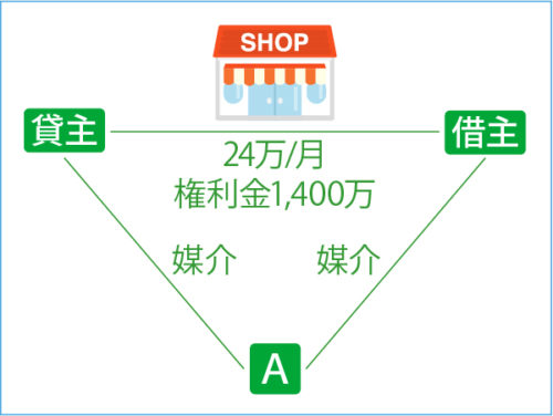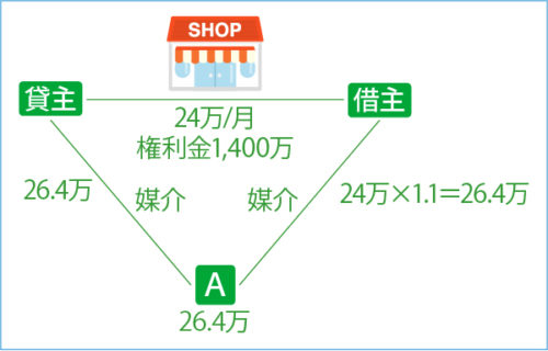 権利金1,400万円をベースに、「売買」と同じ方法で計算します。