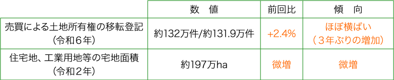 - 令和7年版土地白書(令和7年5月公表)によれば、土地取引について、売買による所有権の移転登記の件数でその動向を見ると、令和6年の全国の土地取引件数は200万件を超えており、前年に比べ大きく増加した。