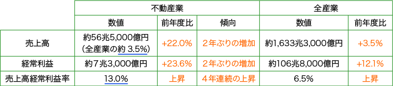 「年次別法人企業統計調査(令和5年度)」によれば、令和5年度における不動産業の営業利益は約6兆4,000億円であり、前年度に比べて36.4%増加しています。