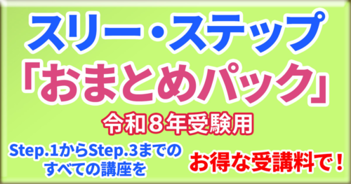 科目別・ステップ別の受講から「おまとめパック」まで、当社の「スリー・ステップ教材」の体系と受講料はこちらです。